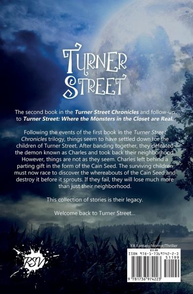 The second book in the Turner Street Chronicles and follow-up to Turner Street: Where the Monsters in the Closet are Real. Following the events of the first book in the Turner Street Chronicles trilogy, things seem to have settled down for the children of Turner Street. After banding together, they defeated the demon known as Charles and took back their neighborhood. However, things are not as they seem. Charles left behind a parting gift in the form of the Cain Seed. The surviving children must now race to discover the whereabouts of the Cain Seed and destroy it before it sprouts. If they fail, they will lose much more than just their neighborhood. This collection of stories is their legacy. Welcome back to Turner Street...