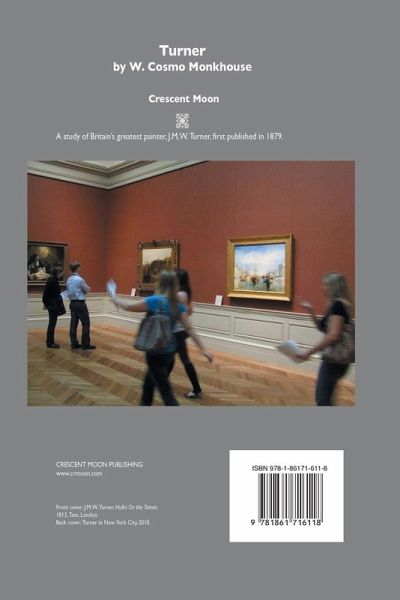 TURNER By W. Cosmo Monkhouse England's greatest artist J.M.W. Turner (1775-1851) is explored in this monograph first published in 1879. Turner continues to fascinate art lovers and critics; his art seems to be more impressive and more inspiring even two centuries later. The book considers each period in the artistic career of the phenomenally talented Turner, from his early days in London to his tours of Britain and then Europe, and his rise to fame and success. Fully illustrated in a brand new format. Includes a chronology. xx pp. www.crmoon.com