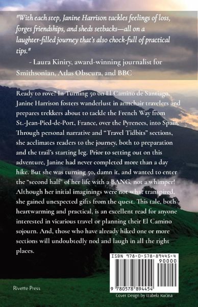 Ready to rove? In Turning 50 on El Camino de Santiago, Janine Harrison fosters wanderlust in armchair travelers and prepares trekkers about to tackle the French Way from St.-Jean-Pied-de-Port, France, over the Pyrenees, into Spain. Through personal narrative and "Travel Tidbits" sections, she acclimates readers to the journey, both to preparation and the trail's starting leg. Prior to setting out on this adventure, Janine had never completed more than a day hike. But she was turning 50, damn it, and wanted to enter the "second half" of her life with a BANG, not a whimper! Although her initial imaginings were not what transpired, she gained unexpected gifts from the quest. This tale, both heartwarming and practical, is an excellent read for anyone interested in vicarious travel or planning their El Camino sojourn. And, those who have already hiked one or more sections will undoubtedly nod and laugh in all the right places.