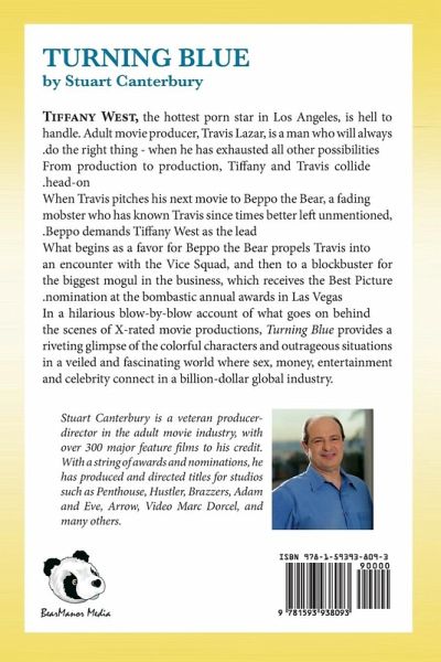 TIFFANY WEST, the hottest porn star in Los Angeles, is hell to handle. Adult movie producer, Travis Lazar, is a man who will always do the right thing - when he has exhausted all other possibilities. From production to production, Tiffany and Travis collide head-on. When Travis pitches his next movie to Beppo the Bear, a fading mobster who has known Travis since times better left unmentioned, Beppo demands Tiffany West as the lead. What begins as a favor for Beppo the Bear propels Travis into an encounter with the Vice Squad, and then to a blockbuster for the biggest mogul in the business, which receives the Best Picture nomination at the bombastic annual awards in Las Vegas. In a hilarious blow-by-blow account of what goes on behind the scenes of X-rated movie productions, Turning Blue provides a riveting glimpse of the colorful characters and outrageous situations in a veiled and fascinating world where sex, money, entertainment and celebrity connect in a billion-dollar global industry.