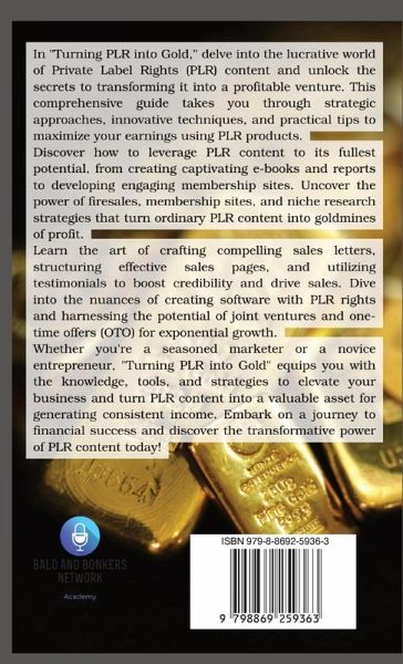 In "Turning PLR into Gold," delve into the lucrative world of Private Label Rights (PLR) content and unlock the secrets to transforming it into a profitable venture. This comprehensive guide takes you through strategic approaches, innovative techniques, and practical tips to maximize your earnings using PLR products. Discover how to leverage PLR content to its fullest potential, from creating captivating e-books and reports to developing engaging membership sites. Uncover the power of firesales, membership sites, and niche research strategies that turn ordinary PLR content into goldmines of profit. Learn the art of crafting compelling sales letters, structuring effective sales pages, and utilizing testimonials to boost credibility and drive sales. Dive into the nuances of creating software with PLR rights and harnessing the potential of joint ventures and one-time offers (OTO) for exponential growth. Whether you're a seasoned marketer or a novice entrepreneur, "Turning PLR into Gold" equips you with the knowledge, tools, and strategies to elevate your business and turn PLR content into a valuable asset for generating consistent income. Embark on a journey to financial success and discover the transformative power of PLR content today!