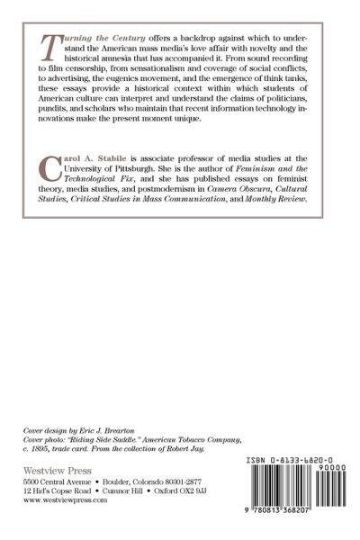The essays in Turning the Century make a significant contribution to our understanding of America's love affairs with novelty and the mass media. The essays also show that neither the current communications revolution nor the response to it is unprecedented. Through this book, Carol Stabile provides a historical context within which scholars and students of American culture can interpret and understand end-of-the-millennium-fever --particularly, the claims of politicians, pundits, and even cultural studies scholars who maintain that recent information technology innovations make the present moment unique. Contemporary studies of mass media and popular culture reflect a similar emphasis on what is new, distinct, and therefore specific to contemporary culture. Claims of millennial transformation, however, are only possible insofar as the history of mass media can be forgotten or ignored. In Turning the Century, Carol Stabile analyzes those hidden, and now all but forgotten, conditions and relations of production that continue to shape and inform contemporary culture.