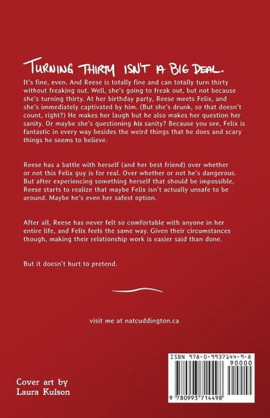 Turning thirty isn't a big deal. It's fine, even. And Reese is totally fine and can totally turn thirty without freaking out. Well, she's going to freak out, but not because she's turning thirty. At her birthday party, Reese meets Felix, and she's immediately captivated by him. (But she's drunk, so that doesn't count, right?) He makes her laugh but he also makes her question her sanity. Or maybe she's questioning his sanity? Because you see, Felix is fantastic in every way besides the weird things that he does and scary things he seems to believe. Reese has a battle with herself (and her best friend) over whether or not this Felix guy is for real. Over whether or not he's dangerous. But after experiencing something herself that should be impossible, Reese starts to realize that maybe Felix isn't actually unsafe to be around. Maybe he's even her safest option. After all, Reese has never felt so comfortable with anyone in her entire life, and Felix feels the same way. Given their circumstances though, making their relationship work is easier said than done. But it doesn't hurt to pretend.
