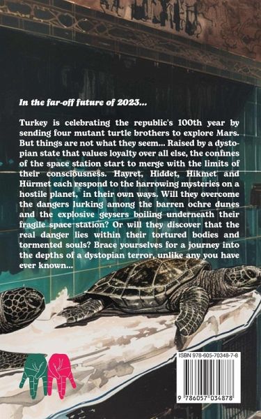 In the far-off future of 2023... Turkey is celebrating the republic's 100th year by sending four mutant turtle brothers to explore Mars. But things are not what they seem... Raised by a dystopian state that values loyalty over all else, the confines of the space station start to merge with the limits of their consciousness. Hayret, Hiddet, Hikmet and Hürmet each respond to the harrowing mysteries on a hostile planet, in their own ways. Will they overcome the dangers lurking among the barren ochre dunes and the explosive geysers boiling underneath their fragile space station? Or will they discover that the real danger lies within their tortured bodies and tormented souls? Brace yourselves for a journey into the depths of a dystopian terror, unlike any you have ever known...