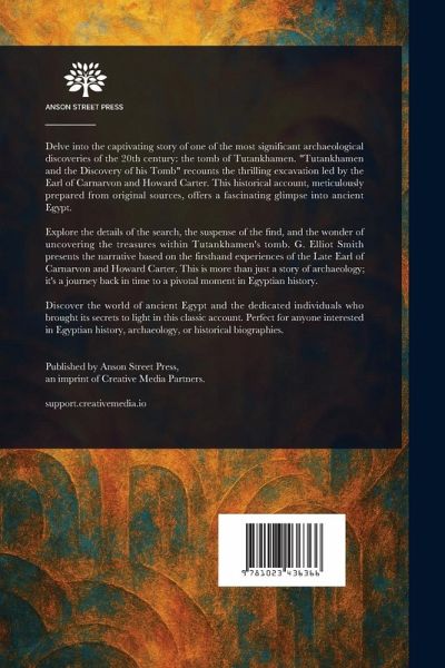 Delve into the captivating story of one of the most significant archaeological discoveries of the 20th century: the tomb of Tutankhamen. "Tutankhamen and the Discovery of his Tomb" recounts the thrilling excavation led by the Earl of Carnarvon and Howard Carter. This historical account, meticulously prepared from original sources, offers a fascinating glimpse into ancient Egypt. Explore the details of the search, the suspense of the find, and the wonder of uncovering the treasures within Tutankhamen's tomb. G. Elliot Smith presents the narrative based on the firsthand experiences of the Late Earl of Carnarvon and Howard Carter. This is more than just a story of archaeology; it's a journey back in time to a pivotal moment in Egyptian history. Discover the world of ancient Egypt and the dedicated individuals who brought its secrets to light in this classic account. Perfect for anyone interested in Egyptian history, archaeology, or historical biographies. This work has been selected by scholars as being culturally important, and is part of the knowledge base of civilization as we know it. This work is in the public domain in the United States of America, and possibly other nations. Within the United States, you may freely copy and distribute this work, as no entity (individual or corporate) has a copyright on the body of the work. Scholars believe, and we concur, that this work is important enough to be preserved, reproduced, and made generally available to the public. We appreciate your support of the preservation process, and thank you for being an important part of keeping this knowledge alive and relevant.