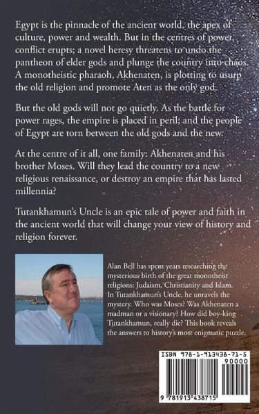Egypt is the pinnacle of the ancient world, the apex of culture, power and wealth. But in the centres of power, conflict erupts; a novel heresy threatens to undo the pantheon of elder gods and plunge the country into chaos. A monotheistic pharaoh, Akhenaten, is plotting to usurp the old religion and promote Aten as the only god. But the old gods will not go quietly. As the battle for power rages, the empire is placed in peril; and the people of Egypt are torn between the old gods and the new. At the centre of it all, one family: Akhenaten and his brother Moses. Will they lead the country to a new religious renaissance, or destroy an empire that has lasted millennia? Tutankhamun's Uncle is an epic tale of power and faith in the ancient world that will change your view of history and religion forever. Who was Moses? Was Akhenaten a madman or a visionary? And how did the boy-king, Tutankhamun, really die? This book reveals the answers to history's most enigmatic puzzle. Alan Bell, a retired academic, has spent seven years researching the mysterious birth of the great monotheist religions: Judaism, Christianity and Islam. In Tutankhamun's Uncle, he unravels the mystery. Many years ago, visiting a junk stall, the author found a solid brass copy of the death mask of Tutankhamun. Tutankhamun had always been a fascination from early childhood, as did Moses due to a strict church upbringing. As the years went by, his mind played with my two heroes and interlocked them into a particular period of history. More study identified a connection with them and a pharaoh named Akhenaten. This triggered a eureka moment. Here was the link to the Exodus and Tutankhamun; here was a man of great stature, a man who changed the world, a man with a brother air-brushed from historical ancient Egypt; another great, Moses. A book written after years of research, Tutankhamun's Uncle is one man's quest to discover the truth about a forgotten prince of Egypt. Read this book to discover what he found; it will change your perception of religion forever.
