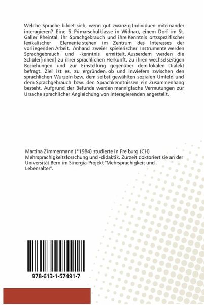 Welche Sprache bildet sich, wenn gut zwanzig Individuen miteinander interagieren? Eine 5. Primarschulklasse in Widnau, einem Dorf im St. Galler Rheintal, ihr Sprachgebrauch und ihre Kenntnis ortsspezifischer lexikalischer Elemente stehen im Zentrum des Interesses der vorliegenden Arbeit. Anhand zweier spielerischer Instrumente werden Sprachgebrauch und -kenntnis ermittelt. Ausserdem werden die Schüler[innen] zu ihrer sprachlichen Herkunft, zu ihren wechselseitigen Beziehungen und zur Einstellung gegenüber dem lokalen Dialekt befragt. Ziel ist es, zu ergründen, ob und inwiefern zwischen den sprachlichen Wurzeln bzw. dem selbst gewählten sozialen Umfeld und dem Sprachgebrauch bzw. den Sprachkenntnissen ein Zusammenhang besteht. Aufgrund der Befunde werden mannigfache Vermutungen zur Ursache sprachlicher Angleichung von Interagierenden angestellt.