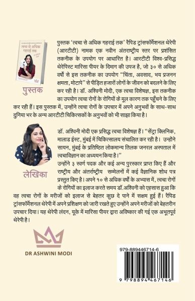 pustak tvacha se adhik gaharaee tak raipid traansaphormeshanal therepee (aarateetee) naamak ek naveen antararaashtreey star par prashansit takaneek ke upayog par aadhaarit hai. aarateetee vishv-prasidhd therepist maarisa peeyar ke dimaag kee upaj hai, jo 30 se adhik varshon se is takaneek ka upayog "chinta, avasaad, bhay, prajanan kshamata, motaape" se peedit hajaaron logon ke jeevan ko badalane ke lie kar rahee hai. do. ashvinee, ek tvacha visheshagy, is takaneek ka upayog tvacha rogon ke rogiyon ko avachetan va mool kaaran tak pahunchane ke lie kar rahee hain. is pustak mein, unhonne tvacha rogon ke upachaar mein apane anubhavon ke saath-saath duniya bhar ke any aarateetee chikitsakon ke anubhavon ko bhee saajha kiya hai.