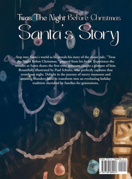 Step into Santa's world as he reveals his story of the classic tale, "Twas the Night Before Christmas," penned from his heart. Experience the wonder as Santa shares the first time someone caught a glimpse of him. Beautifully illustrated by Paul Schultz, who perfectly captures that wondrous night. Delight in the journey of merry moments and amusing blunders fated to transform into an everlasting holiday tradition cherished by families for generations.