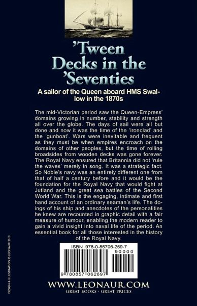 A sailor of the Queen aboard HMS Swallow in the 1870s The mid-Victorian period saw the Queen-Empress' domains growing in number, stability and strength all over the globe. The days of sail were all but done and now it was the time of the 'ironclad' and the 'gunboat'. Wars were inevitable and frequent as they must be when empires encroach on the domains of other peoples, but the time of rolling broadsides from wooden decks was gone forever. The Royal Navy ensured that Britannia did not 'rule the waves' merely in song. It was a strategic fact. So Noble's navy was an entirely different one from that of half a century before and it would be the foundation for the Royal Navy that would fight at Jutland and the great sea battles of the Second World War. This is the engaging, intimate and first hand account of an ordinary seaman's life. The doings of his ship and anecdotes of the personalities he knew are recounted in graphic detail with a fair measure of humour, enabling the modern reader to gain a vivid insight into naval life of the period. An essential book for all those interested in the history of the Royal Navy.
