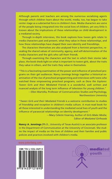 «This is a fascinating examination of the power and influence of preschool programs on their girl audiences. Nancy Jennings brings together a historical examination of the rise of preschool programming and interviews with teens who watched these empowering preschool programs, such as Dora the Explorer. Tween Girls and their Mediated Friends is a wonderful, well written and nuanced analysis of the long term influence of television for young children.» (Ellen Wartella, Professor of Communication Studies and Psychology, Northwestern University)