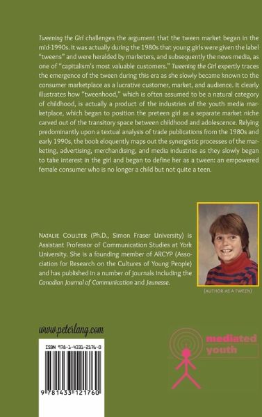 Tweening the Girl challenges the argument that the tween market began in the mid-1990s. It was actually during the 1980s that young girls were given the label «tweens» and were heralded by marketers, and subsequently the news media, as one of «capitalism's most valuable customers». Tweening the Girl expertly traces the emergence of the tween during this era as she slowly became known to the consumer marketplace as a lucrative customer, market, and audience. It clearly illustrates how «tweenhood», which is often assumed to be a natural category of childhood, is actually a product of the industries of the youth media marketplace, which began to position the preteen girl as a separate market niche carved out of the transitory space between childhood and adolescence. Relying predominantly upon a textual analysis of trade publications from the 1980s and early 1990s, the book eloquently maps out the synergistic processes of the marketing, advertising, merchandising, and media industries as they slowly began to take interest in the girl and began to define her as a tween: an empowered female consumer who is no longer a child but not quite a teen.