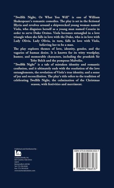 A perfect workbook companion for William Shakespeare's "Twelfth Night". The full text is spaced to allow reading and annotation to be done with ease and each page includes a note section to allow for better organization. Intended to make life a little easier for students (or performers).