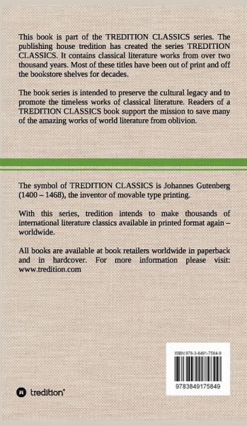 This book (hardcover) is part of the TREDITION CLASSICS. It contains classical literature works from over two thousand years. Most of these titles have been out of print and off the bookstore shelves for decades. The book series is intended to preserve the cultural legacy and to promote the timeless works of classical literature. Readers of a TREDITION CLASSICS book support the mission to save many of the amazing works of world literature from oblivion. With this series, tredition intends to make thousands of international literature classics available in printed format again worldwide.