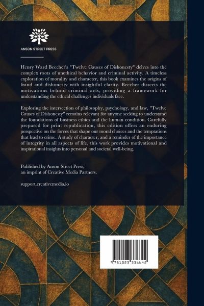 Henry Ward Beecher's "Twelve Causes of Dishonesty" delves into the complex roots of unethical behavior and criminal activity. A timeless exploration of morality and character, this book examines the origins of fraud and dishonesty with insightful clarity. Beecher dissects the motivations behind criminal acts, providing a framework for understanding the ethical challenges individuals face. Exploring the intersection of philosophy, psychology, and law, "Twelve Causes of Dishonesty" remains relevant for anyone seeking to understand the foundations of business ethics and the human condition. Carefully prepared for print republication, this edition offers an enduring perspective on the forces that shape our moral choices and the temptations that lead to crime. A study of character, and a reminder of the importance of integrity in all aspects of life, this work provides motivational and inspirational insights into personal and societal well-being. This work has been selected by scholars as being culturally important, and is part of the knowledge base of civilization as we know it. This work is in the public domain in the United States of America, and possibly other nations. Within the United States, you may freely copy and distribute this work, as no entity (individual or corporate) has a copyright on the body of the work. Scholars believe, and we concur, that this work is important enough to be preserved, reproduced, and made generally available to the public. We appreciate your support of the preservation process, and thank you for being an important part of keeping this knowledge alive and relevant.
