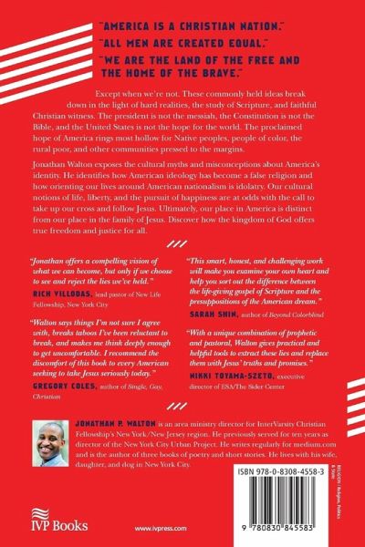 "America is a Christian nation." "All men are created equal." "We are the land of the free and the home of the brave." Except when we're not. These commonly held ideas break down in the light of hard realities, the study of Scripture, and faithful Christian witness. The president is not the Messiah, the Constitution is not the Bible, and the United States is not a city on a hill or the hope for the world. The proclaimed hope of America rings most hollow for Native peoples, people of color, the rural poor, and other communities pressed to the margins. Jonathan Walton exposes the cultural myths and misconceptions about America's identity. Focusing on its manipulation of Scripture and the person of Jesus, he redirects us to the true promises found in the gospel. Walton identifies how American ideology and way of life has become a false religion, and shows that orienting our lives around American nationalism is idolatry. Our cultural notions of life, liberty, and the pursuit of happiness are at odds with the call to take up our cross and follow Jesus. Ultimately, our place in America is distinct from our place in the family of Jesus. Discover how the kingdom of God offers true freedom and justice for all.
