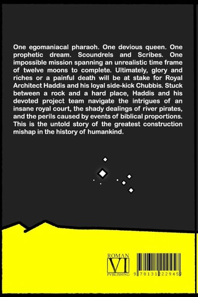 One egomaniacal pharaoh. One devious queen. One prophetic dream. Scoundrels and Scribes. One impossible mission spanning an unrealistic time frame of twelve moons to complete. Ultimately, glory and riches or a painful death will be at stake for Royal Architect Haddis and his loyal side-kick Chubbis. Stuck between a rock and a hard place, Haddis and his devoted project team navigate the intrigues of an insane royal court, the shady dealings of river pirates, and the perils caused by events of biblical proportions. This is the untold story of the greatest construction mishap in the history of humankind.