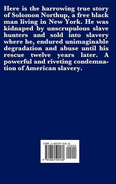 Here is the harrowing true story of Solomon Northup, a free black man living in New York. He was kidnaped by unscrupulous slave hunters and sold into slavery where he, endured unimaginable degradation and abuse until his rescue twelve years later. A powerful and riveting condemnation of American slavery.