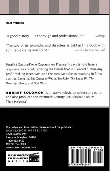 Unlike any previous volume on a film studio, this in-depth history is told from a corporate viewpoint, covering the trends that influenced film-making, profit-making incentives, and the creative policies resulting in films like The Grapes of Wrath, The Snake Pit, The Robe, Cleopatra, The Towering Inferno, and Star Wars. The book spans the birth of the movies; the rise of the studio system; the coming of sound; the Consent Decrees; the development of CinemaScope; the growth of independent production; and the video revolution.
