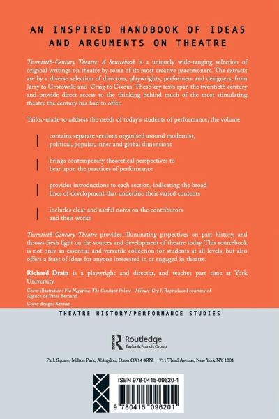 A diverse selection of original texts on theatre by its most creative practitioners - actors, writers, directors and designers. Contributors include Jarry, Ionescu, Shaw, Brecht, Strindberg, Stanislawski, Lorca, Brook, Soyinka, Boal and Barba.