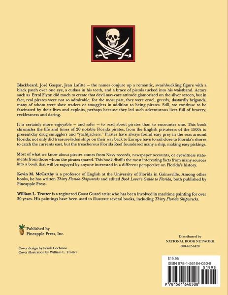 Blackbeard, Jose Gaspar, Jean Lafitte—the names conjure up a romantic, swashbuckling figure with a black patch over one eye, a cutlass in his teeth, and a brace of pistols tucked into his waistband. Actors such as Errol Flynn did much to create that devil-may-care attitude glamorized on the silver screen, but in fact, real pirates were not so admirable; for the most part they were cruel, greedy, dastardly brigands, many of whom were slave traders or smugglers in addition to being pirates. Still, we continue to be fascinated by their lives and exploits, perhaps because they led such adventurous lives full of bravery, recklessness and daring. It is certainly more enjoyable— and safer—to read about pirates than to encounter one. This book chronicles the lives and times of 20 notable Florida pirates, from the English privateers of the 1500s to present-day drug smugglers and "yachtjackers." Pirates have always found easy prey in the seas around Florida; not only did the treasure-laden ships on their way back to Europe have to sail close to Florida's shores to catch the currents east, but the treacherous Florida Reef foundered many a ship, making easy pickings. Most of what we know about pirates comes from Navy records, newspaper accounts, or eyewitness statements from those whom the pirates spared. This book distills the most interesting facts from many sources into a book that will be enjoyed by anyone interested in a different perspective on Florida's history.