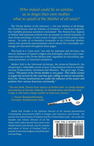Who could forget their own mother, what to speak of the Mother of all souls? Kali, the Divine Mother of the Universe, emerges from these pages to engulf one with infinite love in this extraordinary description of Her many divine aspects. "...This is a contemplative cyclopedia of the magic and mystery of Mother Kali, indispensable especially for lovers of Kali...." - Prof. Shivaramkrishna, Osmania University, India