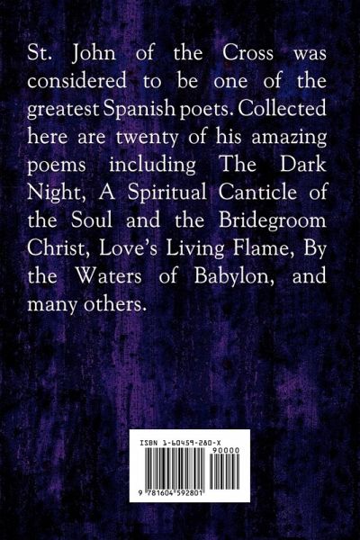 St. John of the Cross was considered to be one of the greatest Spanish poets. Collected here are twenty of his amazing poems including The Dark Night, A Spiritual Canticle of the Soul and the Bridegroom Christ, Love's Living Flame, By the Waters of Babylon, and many others.