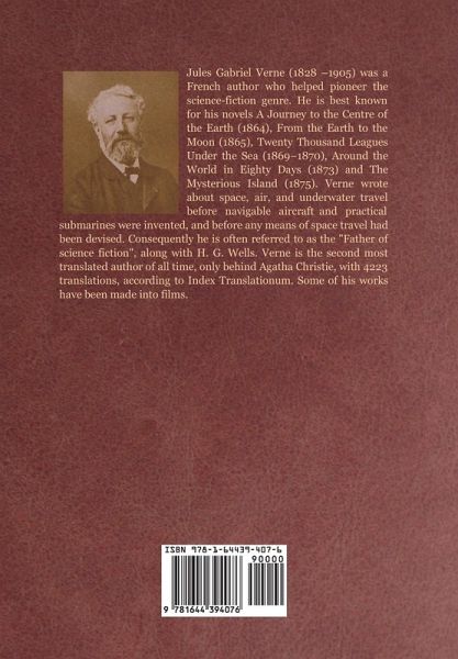 Jules Gabriel Verne (1828 -1905) was a French author who helped pioneer the science-fiction genre. He is best known for his novels A Journey to the Centre of the Earth (1864), From the Earth to the Moon (1865), Twenty Thousand Leagues Under the Sea (1869-1870), Around the World in Eighty Days (1873) and The Mysterious Island (1875). Verne wrote about space, air, and underwater travel before navigable aircraft and practical submarines were invented, and before any means of space travel had been devised. Consequently he is often referred to as the "Father of science fiction", along with H. G. Wells. Verne is the second most translated author of all time, only behind Agatha Christie, with 4223 translations, according to Index Translationum. Some of his works have been made into films.