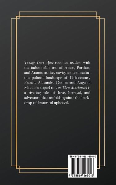 Twenty Years After reunites readers with the indomitable trio of Athos, Porthos, and Aramis, as they navigate the tumultuous political landscape of 17th-century France. Alexandre Dumas and Auguste Maquet's sequel to The Three Musketeers is a riveting tale of love, betrayal, and adventure that unfolds against the backdrop of historical upheaval.