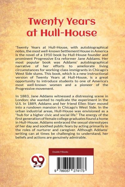 'Twenty Years at Hull-House, with autobiographical notes, the most well-known Settlement House in America is the novel of a 1910 book by Hull-House founder and prominent Progressive Era reformer Jane Addams. Her most popular book was Addams' autobiographical narrative of her efforts to ameliorate living circumstances for working-class immigrants in Chicago's West Side slums. This book, which is a new instructional version of Twenty Years at Hull-House, is a great opportunity to introduce students to one of America's most well-known women and a pioneer of the Progressive movement. In 1883, Jane Addams witnessed a distressing scene in London; she wanted to replicate the experiment in the U.S. In 1889, Addams and her friend Ellen Starr moved into a rundown mansion in Chicago's West Side. In the urban industrial areas, Hull-House was envisioned as a "hub for a higher civic and social life." The energy of the first generation of female college graduates found a home in Hull-House. Addams embraced the sexual stereotypes of her day and soothed public fears by acting primarily in the roles of nurturer and caregiver. Although Addams' writing can at times be challenging to understand, her beliefs and actions are genuinely admirable.