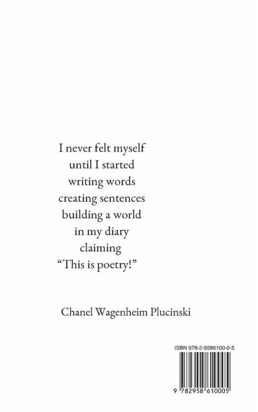 I never felt myself until I started writing words creating sentences building a world in my diary claiming "This is poetry!" Chanel Wagenheim Plucinski