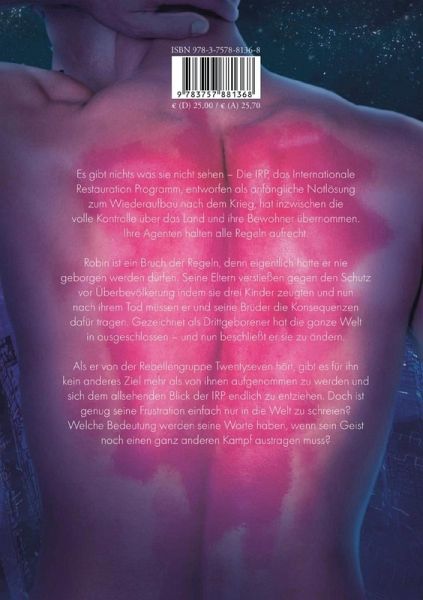 Wenn du eine Sache in der Welt ändern könntest, nur eine einzige, was wäre das?Robin Edwards ist das dritte Kind seiner Familie und damit ihr zweites Verbrechen. Denn in einem Staat, der alles kontrolliert, wird jeder Fehler ausgemerzt und jede Kritik im Keim erstickt. Doch dann trifft Robin auf die Rebellengruppe Twentyseven, die sich ihre Stimme nicht nehmen lassen und plötzlich steht einer Änderung nichts mehr im Weg - außer er selbst.