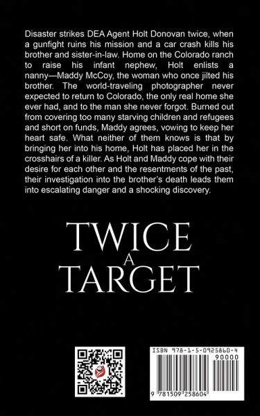Disaster strikes DEA Agent Holt Donovan twice, when a gunfight ruins his mission and a car crash kills his brother and sister-in-law. Home on the Colorado ranch to raise his infant nephew, Holt enlists a nanny-Maddy McCoy, the woman who once jilted his brother. The world-traveling photographer never expected to return to Colorado, the only real home she ever had, and to the man she never forgot. Burned out from covering too many starving children and refugees and short on funds, Maddy agrees, vowing to keep her heart safe. What neither of them knows is that by bringing her into his home, Holt has placed her in the crosshairs of a killer. As Holt and Maddy cope with their desire for each other and the resentments of the past, their investigation into the brother's death leads them into escalating danger and a shocking discovery.