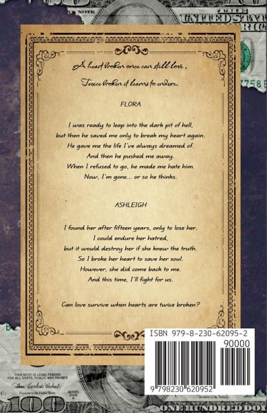 FLORA I was ready to leap into the dark pit of hell, but then he saved me only to break my heart again. He gave me the life I've always dreamed of. And then he pushed me away. When I refused to go, he made me hate him. Now, I'm gone... or so he thinks. ASHLEIGH I found her after fifteen years, only to lose her. I could endure her hatred, but it would destroy her if she knew the truth. So I broke her heart to save her soul. However, she did come back to me. And this time, I'll fight for us. Can love survive when hearts are twice broken?