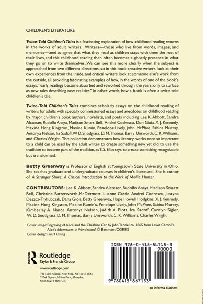 Betty Greenway is Professor of English at Youngstown State University in Ohio. She teaches graduate and undergraduate courses in children's literature. She is author of A Stranger Shore: A Critical Introduction to the Work of Mollie Hunter.