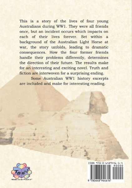 This is a story of the lives of four young Australians during WW1. They were all friends once, but an incident occurs which impacts on each of their lives forever. Set within a background of the Australian Light Horse at war, the story unfolds, leading to dramatic consequences. How the four former friends handle their problems differently, determines the direction of their future. The results make for an interesting and exciting novel. Truth and fiction are interwoven for a surprising ending. Some Australian WW1 history excerpts are included and make for interesting reading.