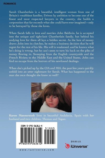 Sarah Chamberlain is a beautiful, intelligent woman from one of Britain's wealthiest families. Driven by ambition to become one of the finest and most respected lawyers in the country, she builds a corporation that far exceeds what she could have ever imagined-only to be betrayed by those she loves. When Sarah falls in love and marries John Baldwin, he is accepted into the unique and tight-knit Chamberlain family, but behind his undying love for them all lays a hidden secret. As the lure of money draws John into its clutches, he makes a business decision that he will regret for the rest of his life. His will is weakened, and he knows what he's doing is wrong, but he can't seem to turn his back on the piles of money flowing in. Sweeping from the English countryside and the French Riviera to the Middle East and the United States, John can find no escape from the horrors of his newfound dealings. When she's picked up by the CIA and MI5, the past few years quickly unfold into an utter nightmare for Sarah. What has happened to the man she once thought she knew so well?