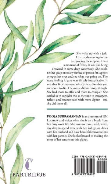 She woke up with a jerk. Her hands were up in the air, groping for support. It was a moment of frenzy. It was like being drowned in some deep waterbody. She could neither grasp on to any surface or person for support or open her eyes and see what was going on. The scary feeling it gave was simply inexplicable. It was that final moment when you realise that you are about to die. The music did not stop, though. She had more to offer and more to conquer. She settled in to consider this as the time to introspect, reflect, and bounce back with more vigour-and she did them all.