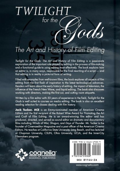 Twilight for the Gods: The Art and History of Film Editing is a passionate exploration of the important role played by editing in the process of film-making and a functional guide to using editing most effectively. The book explains how an editor is, in many ways, responsible for the final rewriting of a script — and that editing is in reality a pictorial form of writing. Filled with examples from well-known films, the book explores all aspects of film editing from the first flash of inspiration to the latest technological advances. Readers will learn about the early history of editing, the impact of television, the influence of the French New Wave, and liquid editing. The book also discusses working with directors, making the first cut, and cutting room etiquette. Written by a film editor with 50 years of experience in the field, Twilight for the Gods is well suited to courses on media editing. The book is also an excellent reading selection for classes dealing with film history. Jack Tucker, ACE is an Emmy-nominated member of American Cinema Editors and the first recipient of the Robert Wise Award for Promoting the Art and Craft of Film Editing. He is an award-winning film editor and has produced, directed, and served as sound editor on dramatic and documentary films including Winds of War, Shogun, and Days of Thunder. Mr. Tucker is the founder of Cinemaeditor Magazine and a past officer of the American Cinema Editors. He teaches at California State University, Long Beach, and has lectured at Chapman University, CSUN, Ohio University, UCLA, and the Inner-City Filmmakers program.