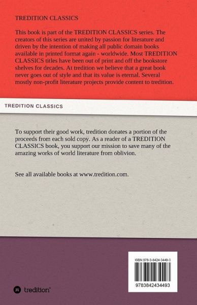 This book is part of the TREDITION CLASSICS series. The creators of this series are united by passion for literature and driven by the intention of making all public domain books available in printed format again - worldwide. At tredition we believe that a great book never goes out of style. Several mostly non-profit literature projects provide content to tredition. To support their good work, tredition donates a portion of the proceeds from each sold copy. As a reader of a TREDITION CLASSICS book, you support our mission to save many of the amazing works of world literature from oblivion.