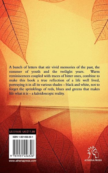 A bunch of letters that stir vivid memories of the past, the summer of youth and the twilight years. Warm reminiscences, coupled with traces of bitter ones, combine to make this book a true reflection of a life well lived, portraying it all in its various shades - black and white, not to forget the sprinkilings of reds, blues and greens that makes life what it is - a kaleidoscopic reality.