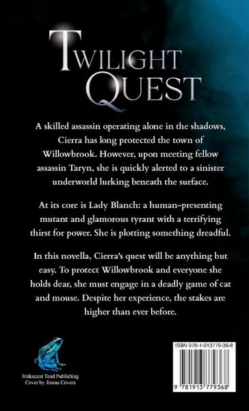 A skilled assassin operating alone in the shadows, Cierra has long protected the town of Willowbrook. However, upon meeting fellow assassin Taryn, she is quickly alerted to a sinister underworld lurking beneath the surface. At its core is Lady Blanch: a human-presenting mutant and glamorous tyrant with a terrifying thirst for power. She is plotting something dreadful. In this novella, Cierra's quest will be anything but easy. To protect Willowbrook and everyone she holds dear, she must engage in a deadly game of cat and mouse. Despite her experience, the stakes are higher than ever before.