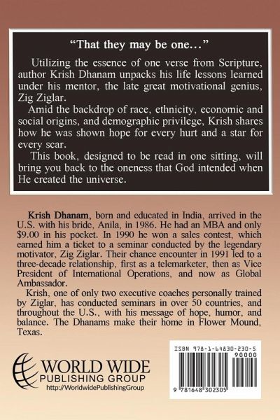 Utilizing the essence of one verse from Scripture, author Krish Dhanam unpacks his life lessons learned under his mentor, the late great motivational genius, Zig Ziglar.