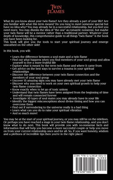 If you want to discover how to meet your twin flame, the signs you need to know, and the stages you'll go through, then keep reading... What do you know about your twin flame? Are they already a part of your life? Do you long to meet someone special but have no idea why? You may already be in a successful relationship, but you feel you need more. You may dismiss the idea of "the one" as romantic nonsense, but maybe your twin flame will be a mentor rather than a traditional partner. Whatever your depth of knowledge, this comprehensive guide to all things "twin flame" is the book you have been looking for. This book will give you the tools to start your spiritual journey and emerge unscathed on the other side! In this book, you will:Learn the difference between a soul mate and a twin flame Find out what happens when you find members of your soul group and allow yourself to live a more fruitful life Explore what is meant by the term twin flame and where it came from Get advice on the best ways to survive trauma in your spiritual relationships Discover the difference between your twin flame connection and the members of your soul group Uncover 15 amazing signs you may have already met your twin flame Discover why you need to work on your own spiritual growth to help your twin flame connection Know exactly when to let go of toxic unions Understand that twin flames have been assigned from the beginning of time and will remain connected forever Investigate 10 types of soul mates you may already have in your life Identify the biggest misconceptions about divine timing and how you can overcome them Find out if surrendering to the universe really is a bad thing Learn what can you do to raise your spiritual vibration And so much more! You may be at the start of your spiritual journey, or you may still be on the sidelines. Or perhaps you have reached a stage in your twin flame relationship, and you don't know what to do next. This book will provide you with no-nonsense facts and information that will help you become a more successful couple or help you move on from your current relationship once and for all. So, if you want honesty, wisdom, and a plethora of incredible tips then you're in the right place! Get a copy of this book today and receive immediate insight into this amazing journey you're on.