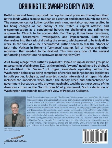 Similarities between "Playboy" Donald Trump and "Holy Man" Martin Luther? Scandalized by such a thought? Through the rediscovery of the Gospel, the great Reformer realized he was the object of God's love, not His anger and wrath. Both Luther and Trump understood that God's ways are not always our ways, and that God can choose and work through sinners. Neither twin understood themselves to be saints but were free to be themselves. They are gifted yet flawed human beings driven by optimistic visions of what the Church and State should be. Drawing insights from history, Scripture, and theology, Swartz illustrates numerous similarities in his Twins' separated by five centuries. The times, events, and circumstances they encountered exhibit uncanny parallelisms: elite establishments, social media, swamps, walls, and plagues. Even more striking is how their "political stance" and personal traits mirror each other: coarse and filthy speech, pugnacious reactions, and use of derisive nicknames. There's also a resemblance in their spouses as they became the "Maligned Housewives of the Black Cloister and the White House!"