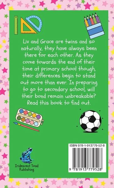 Liv and Grace are twins and so naturally, they have always been there for each other. As they come towards the end of their time at primary school though, their differences begin to stand out more than ever. In preparing to go to secondary school, will their bond remain unbreakable? Read this book to find out.