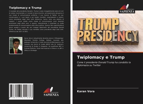 Il mandato del presidente Donald J. Trump è stato innegabilmente pieno di cicli di notizie movimentate e il mondo lo tiene d'occhio, principalmente attraverso il suo mezzo di comunicazione preferito: il suo manico di Twitter. Le sue conversazioni e i suoi tweet a vari leader mondiali, organizzazioni e nazioni, come presidente degli Stati Uniti d'America, hanno visto una pletora di reazioni. I social media come mezzo di comunicazione sono diventati prominenti negli ultimi anni, e questo, naturalmente, è diventato un modo predominante di comunicazione nella sfera politica. Questo libro approfondisce alcuni aspetti e analisi dei vari impegni diplomatici del presidente Donald Trump, via Twitter durante il suo mandato come presidente degli Stati Uniti d'America dal 2017 al 2021.