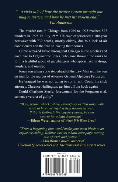 The murder rate in Chicago from 1965 to 1995 reached 827 murders in 1995. In July 1995, Chicago experienced a 100-year heatwave with 739 deaths, mostly elderly, due to a lack of air conditioners and the fear of leaving their homes. Crime wreaked havoc throughout Chicago in the nineties and gave rise to D'Quandree Jones, who rose through the ranks to form a frightful group of gangbangers who specialized in drugs, burglary, and murder. Jones was always one step ahead of the law until he was on trial for the murder of Attorney General Alphonse Ferguson. He bragged he was not going to rot in jail. Could his slick attorney, Clarence Huffington, get him off the hook again? Could Charlotte Steele, forewoman for the Ferguson trial, cement a verdict of guilty?