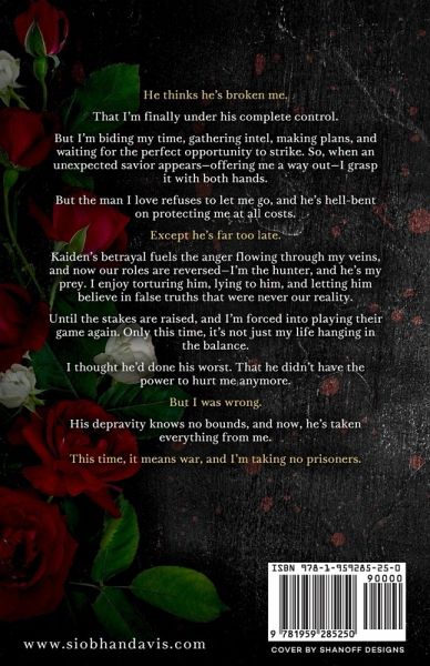 He thinks he's broken me. That I'm finally under his complete control. But I'm biding my time, gathering intel, making plans, and waiting for the perfect opportunity to strike. So, when an unexpected savior appears-offering me a way out-I grasp it with both hands. But the man I love refuses to let me go, and he's hell-bent on protecting me at all costs. Except he's far too late. Kaiden's betrayal fuels the anger flowing through my veins, and now our roles are reversed-I'm the hunter, and he's my prey. I enjoy torturing him, lying to him, and letting him believe in false truths that were never our reality. Until the stakes are raised, and I'm forced into playing their game again. Only this time, it's not just my life hanging in the balance. I thought he'd done his worst. That he didn't have the power to hurt me anymore. But I was wrong. His depravity knows no bounds, and now, he's taken everything from me. This time, it means war, and I'm taking no prisoners. This is book two of three and it's not a standalone read. Due to mature content and themes, this series is only recommended to readers aged eighteen and older. 97,000 words in length and ends on a cliffhanger.