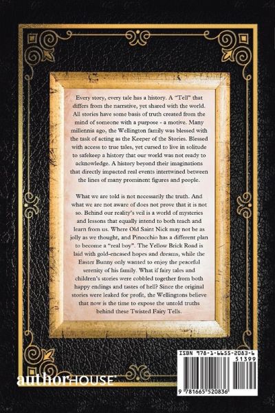 Every story. Every tale has a history. A background that differs from the narrative that has been shared with the world. But every story has some basis in truth created from the mind of someone with a purpose-a motive. Many millennia ago, the Wellington family was blessed with the curse being the keeper of the stories. Blessed to know the truth and dissimilarly cursed to live in solitude to safe keep a history that the world was not ready to acknowledge indeed existed beyond their imaginations. History is a butterfly effect of events intertwined between the lives of many prominent figures and people. What you know is not necessarily the truth? And what you are not aware of does not prove that it is not so. Behind our reality's veil is a world of mystery and lessons that a higher being hopes to learn from us as much as they attempt to teach us. Where old Saint Nick may not be as jolly, and Pinocchio just wants to be as Real as any other boy. The Yellow Brick Road is not only laid with gold and hopes and dreams, and the Easter Bunny only wanted to enjoy the peaceful serenity of his family. What if fairy tales and children's stories were equally part happy endings and part tastes of hell. If the original stories were leaked for profit, but the Wellingtons feel now is the time to expose the untold truths behind the Twisted Fairy Tells.